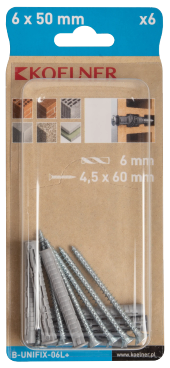 2. UNIPLUG Universal plug 6x50 mm with screw 4,5x60 mml - blister - 6 pcs.