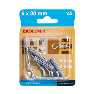 2. UNIPLUG Universal plug 6x30 mm with round hook - blister - 4 pcs.