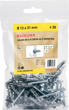 2. DRAM Metal Self-drill fixing for drywall 13x31 mm with screw 4,2x32 mm - plastic bag - 30 pcs.
