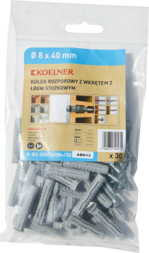 2. UNIPLUG Universal plug 8x40 mm with screw 5,0x60 mm - plastic bag - 30 pcs.