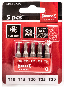 Bit set 25 mm T10 T15 T20 T25 T30 - blister - 5 el.