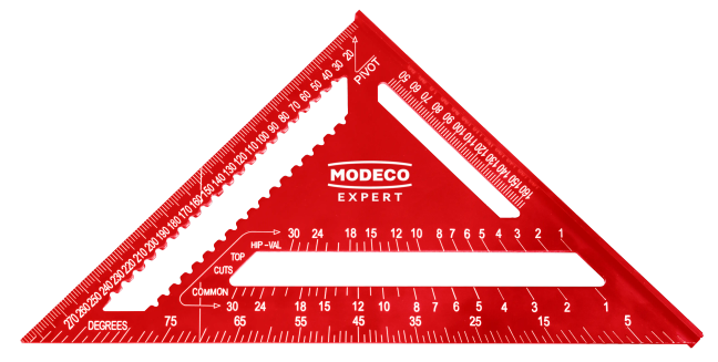 • On the longest side there is a graduation-protractor, which allows you to quickly determine and measure the inclination angles of the roof.