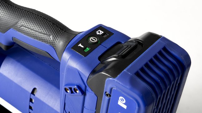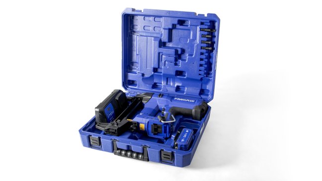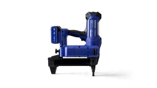 • Lithium-ion battery provides twice the performance – 900 fasteners per charge and a 50-minute charge time.