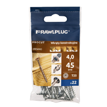 2. PTX Construction screw with countersunk head and partial thread 4x45 mm - plastic bag - 22 pcs.