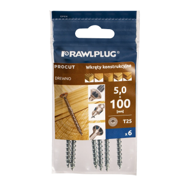 2. PTX Construction screw with countersunk head and partial thread 5x100 mm - plastic bag - 6 pcs.