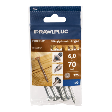 2. PTX Construction screw with countersunk head and partial thread 6x70 mm - plastic bag - 6 pcs.