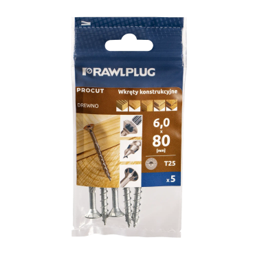 2. PTX Construction screw with countersunk head and partial thread 6x80 mm - plastic bag - 5 pcs.