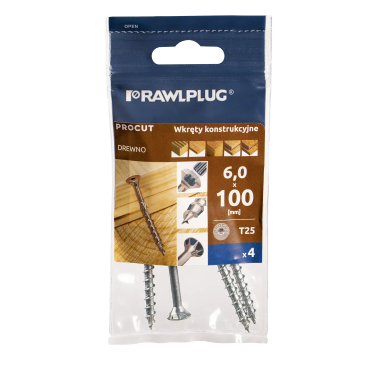 2. PTX Construction screw with countersunk head and partial thread 6x100 mm - plastic bag - 4 pcs.