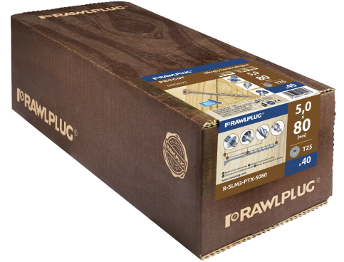 2. PTX Construction screw with countersunk head and partial thread 5x80 mm - plastic box - 40 pcs.