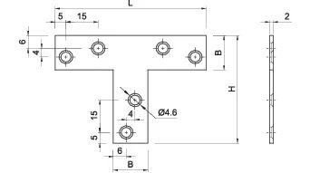 2. Tee Connector Plate, 16mm x 50mm x 70mm x 2mm- Cardboard Box - 250 pcs