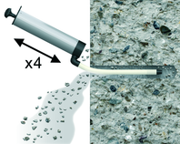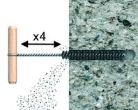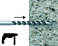 Solid substrates: Insert the mixer nozzle to the bottom of the drill hole and inject resin, slowly withdrawing the nozzle as the hole is filled to 70% of its depth.