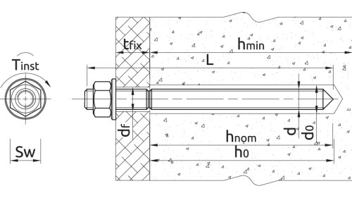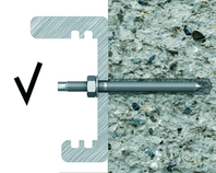 A bonded anchor with a threaded rod is correctly installed in the concrete substrate.