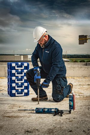 • Efficient electropneumatic impact generating an energy of 2.0 J with a frequency of up to 4,400 bpm allows for extremely effective drilling of holes up to 20 mm in diameter in concrete