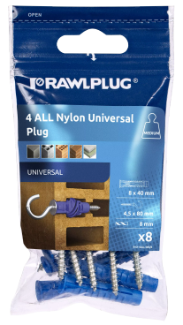 4ALL Universal plug 8x40mm with round hook - plastic bag - 8 pcs.